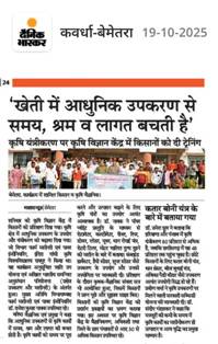16 Oct 2025 - कृषि क्षेत्र कृषि यंत्रीकरण का उपयोग एक दिवसीय प्रशिक्षण कार्यक्रम